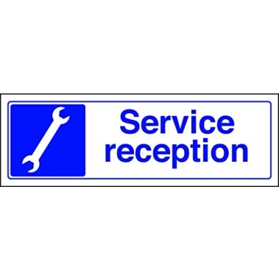 Help to keep staff safe by informing of high risk areas and safe working procedures. Conforms to EN ISO 7010:2012 Landscape Orientation. Sign reads "Service Reception" Highly durable 1mm plastic material and screen printed message will stand the test of time Sign measures 300 x 100mm.