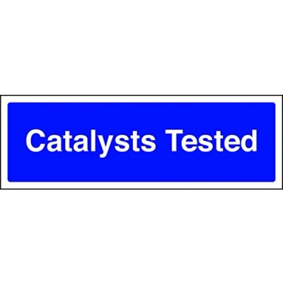 Help to keep staff safe by informing of high risk areas and safe working procedures. Conforms to EN ISO 7010:2012 Landscape Orientation. Sign reads "Catalysts Tested" Highly durable Self Adhesive Vinyl material and screen printed message will stand the test of time Sign measures 300 x 100mm. Self Adhesive material will adhere securely to most surfaces