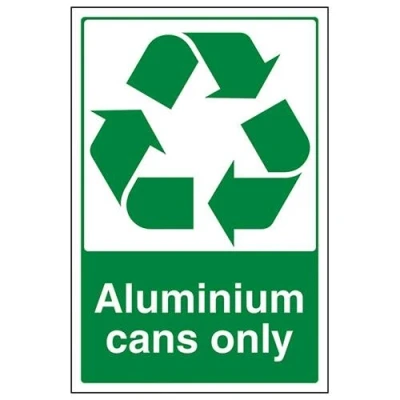 Portrait Orientation. Sign reads "Aluminium Cans Only" Highly durable 1mm plastic material and screen printed message will stand the test of time Sign measures 200 x 300mm 0 0