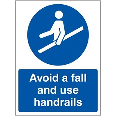 VSafety Avoid A Fall and Use Handrails Sign 150x200mm Self Adhesive Vinyl