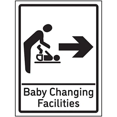 VSafety Baby Changing Facilities Arrow Right Sign 150x200mm Self Adhesive Aluminium Effect