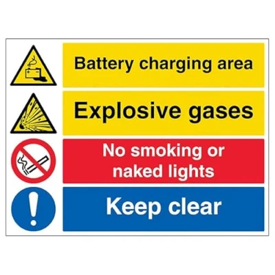 VSafety BatteryCharging/Explosive/NoSmoking/Keep Clr 800x600mm Class RA1 Reflective 3mm Aluminium Composite With Anti Graffiti Coating Safety Sign