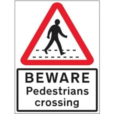 VSafety Beware Pedestrian Crossing 600x800mm Class RA1 Reflective 3mm Aluminium Composite With Anti Graffiti Coating & Fixing Channel Safety Sign