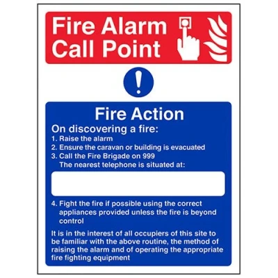 VSafety Caravan Site Fire Action Sign 210mm x 297mm (A4) 2mm Super Strong PETG