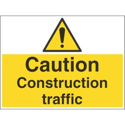 Helps to fulfil legal obligations to inform employees, visitors and the general public of potential hazards as per Health and Safety (Safety Signs & Signals) Regulations 1996 Conforms to EN ISO 7010:2012 - Warning signs feature a triangular symbol with a black pictogram and yellow background occupying at least 50% of the total sign area Landscape Orientation. Sign reads "Caution. Construction Traffic" Screen printed on high quality 2mm rigid plastic material Sign measures 600 x 450mm