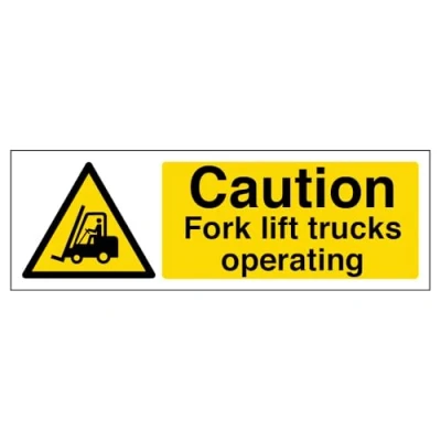 VSafety Caution Fork Lift Trucks Operating Sign Landscape 300mm x 100mm 1mm Rigid Plastic