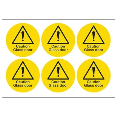 VSafety Caution Glass Door Sign Sheet of 6 Labels 65mm Dia Self Adhesive Vinyl