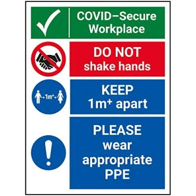 Vsafety Covid Secure Workplace Appropriate PPE 150mm X 200mm 1mm Rigid Plastic