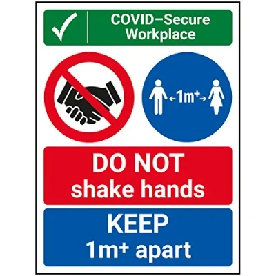 Vsafety Covid Secure Workplace Do Not Shake Hands 150mm X 200mm Self Adhesive Vinyl