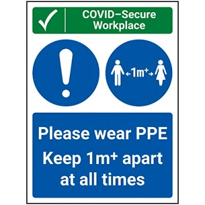 Vsafety Covid Secure Workplace PPE/Keep 1M Apart 150mm X 200mm 1mm Rigid Plastic