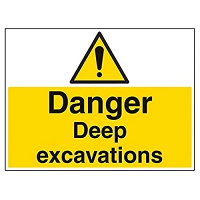 Helps to fulfil legal obligations to inform employees, visitors and the general public of potential hazards as per Health and Safety (Safety Signs & Signals) Regulations 1996 Conforms to EN ISO 7010:2012 - Warning signs feature a triangular symbol with a black pictogram and yellow background occupying at least 50% of the total sign area Landscape Orientation. Sign reads "Danger. Deep Excavations" Screen printed on high quality 2mm rigid plastic material Sign measures 600 x 450mm