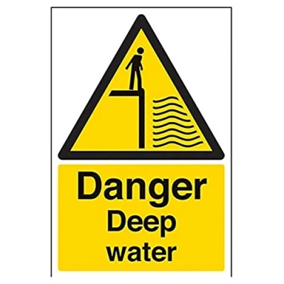 Ideal for use in kitchens and toilets to highlight any sources of hot water which could scald or injure Conforms to EN ISO 7010:2012 - Warning signs feature a triangular symbol with a black pictogram and yellow background occupying at least 50% of the total sign area Portrait Orientation. Sign reads "Danger. Deep Water" Highly durable 1mm plastic material and screen printed message will stand the test of time Sign measures 200 x 300mm