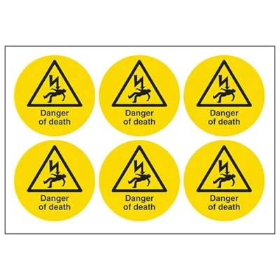 VSafety Danger of Death Sign Sheet 6 Labels 65mm Dia Self Adhesive Vinyl