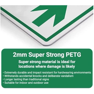 Provide directions to facilities on your premises Clear and easy to understand - black symbol and black text on a white background Conforms to EN ISO 7010:2012 A "super tough" 2mm thick material with long lasting strength and durability Square Orientation. Dimensions: 150 x 150mm.