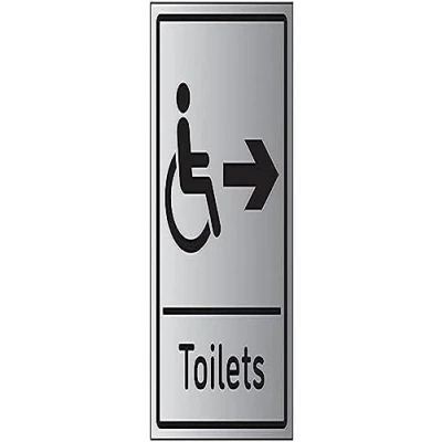 VSafety Disabled Toilets Arrow Right 150mm x 200mm 1.6mm Aluminium Effect Rigid Plastic