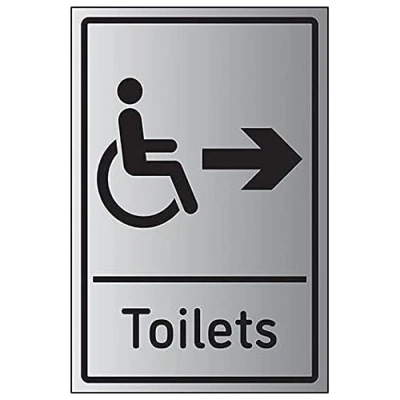 VSafety Disabled Toilets Arrow Right 200mm x 300mm 1.6mm Aluminium Effect Rigid Plastic