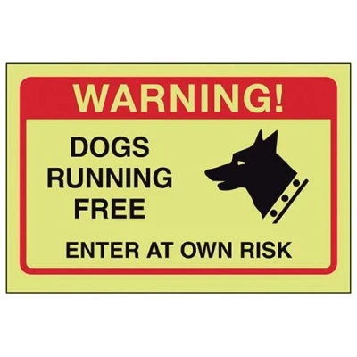 VSafety Dogs Running Free, Enter At Own Risk Sign 200mm x 150mm Glow In the Dark Rigid Plastic