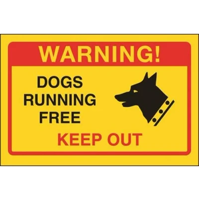 VSafety Dogs Running Free, Keep Out Sign 200mm x 150mm Yellow Rigid Plastic