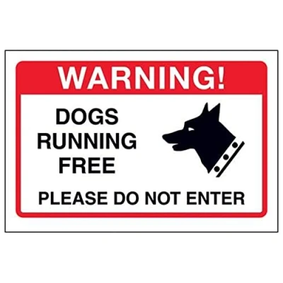 VSafety Dogs Running Free, Please Do Not Enter Sign 200mm x 150mm 1mm Rigid Plastic
