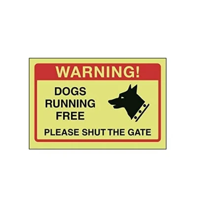 VSafety Dogs Running Free, Please Shut the Gate Sign 150mm x 100mm Glow In Dark Rigid Plastic