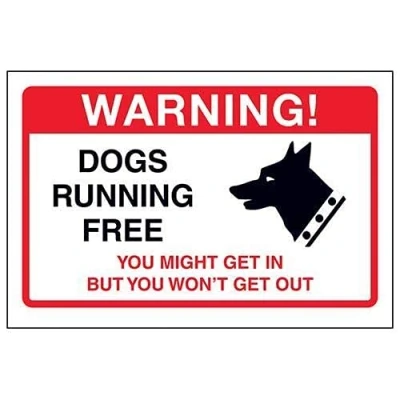 VSafety Dogs Running Free, You Might Get In… Sign 150mm x 100mm Adhesive Vinyl