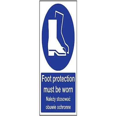 Sign Reads: Foot Protection Must Be Worn - Nalezy Stosowac Obuwie Ochronne Ensures employees are fully aware of risks and hazards of using machinery Ensures employers comply with their responsibility to inform staff and promote good ear health Conforms to EN ISO 7010:2012 Highly durable - made from durable 1mm rigid plastic