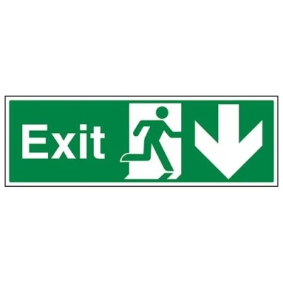 VSafety Exit Arrow Down Sign Landscape 600mm x 200mm Self Adhesive Vinyl