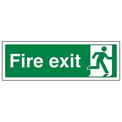 VSafety Final Fire Exit Man Right Sign Landscape 450mm x 150mm 2mm Rigid Plastic