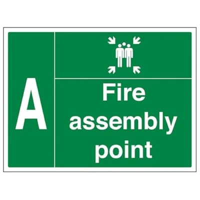 VSafety Fire Assembly Point w/Family A 800x600mm 3mm Aluminium Composite With Anti Graffiti Coating Safety Sign