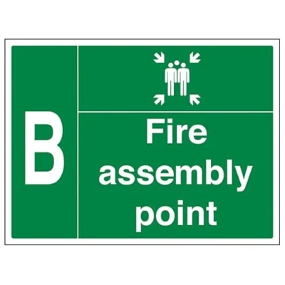 VSafety Fire Assembly Point w/Family B 800x600mm 3mm Aluminium Composite With Anti Graffiti Coating Safety Sign