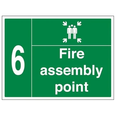 VSafety Fire Assembly Point w/Family No. 6 800x600mm Class RA1 Reflective 3mm Aluminium Composite Safety Sign