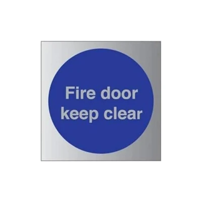VSafety Fire door keep clear Sign 150mm x 3mm Brushed Alu Comp