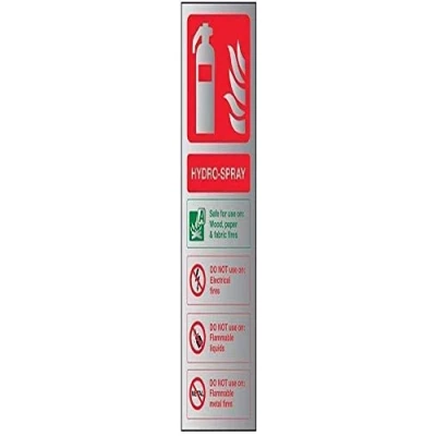 VSafety Fire Extinguisher Hydro Spray ID Sign 100mm x 280mm 1.6mm Alu Rigid Plastic