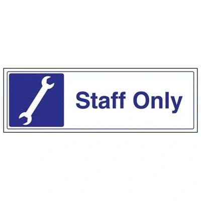 Landscape Orientation. Sign reads "Staff Only" Highly durable Self Adhesive Vinyl material and screen printed message will stand the test of time