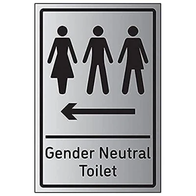 VSafety Gender Neutral Toilet Arrow Left 150mm x 200mm 1.6mm Aluminium Effect Rigid Plastic