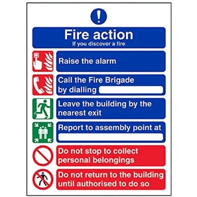 Provides essential information regarding action to be taken in the event of a fire Clear and easy to understand - white symbol and white text on a red background Conforms to EN ISO 7010:2012 A "super tough" 2mm thick material with long lasting strength and durability Portrait Orientation. Dimensions: 210 x 297mm (A4).