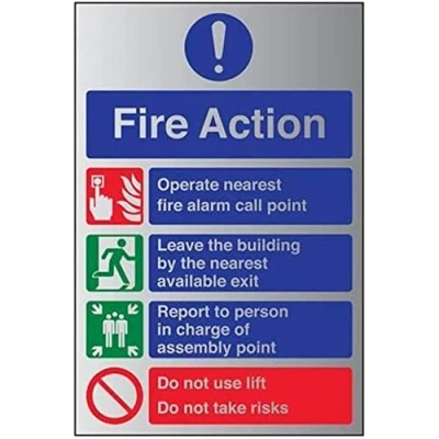 VSafety General Fire Action Prohibition/Safe Lifts Sign 150mm x 200mm 1.6mm Alu Rigid Plastic