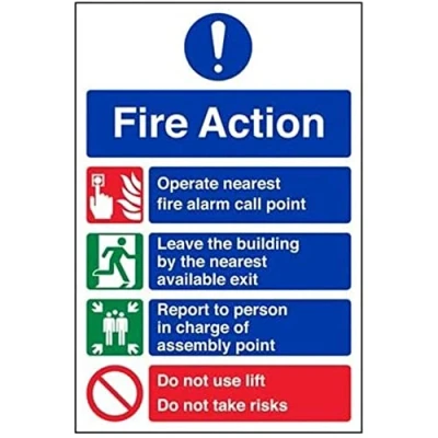 VSafety General Fire Action Prohibition/Safe Lifts Sign Portrait 210mm x 297mm (A4) Self Adhesive Vinyl