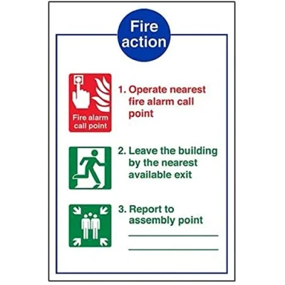 VSafety General Fire Action White Sign Portrait 210mm x 297mm (A4) 1mm Rigid Plastic