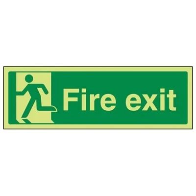 Helps to fulfil obligations to identify escape routes in a fire emergency for all members of staff and visitors as per Health and Safety (Safety Signs & Signals) Regulations 1996 Conforms to EN ISO 7010:2012 by featuring a green background with a white pictogram or text positioned centrally Landscape Orientation. Sign reads "Fire Exit" Highly durable Glow In The Dark Self Adhesive Vinyl and screen printed message will stand the test of time Sign measures 300 x 150mm. Self Adhesive material will adhere securely to most surfaces