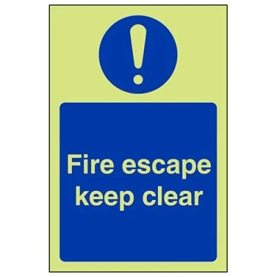 Helps to fulfil obligations to show vital escape route information about fire doors for all employees and visitors as per Health and Safety (Safety Signs & Signals) Regulations 1996 Conforms to EN ISO 7010:2012 Portrait Orientation. Sign reads "Fire Escape Keep Clear" Highly durable Glow In The Dark Self Adhesive Vinyl and screen printed message will stand the test of time Sign measures 100 x 150mm. Self Adhesive material will adhere securely to most surfaces
