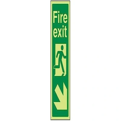 VSafety Glow In The Dark Fire Exit Arrow Down Right Sign 150mm x 450mm Self Adhesive Vinyl