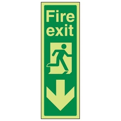 VSafety Glow In The Dark Fire Exit Arrow Down Sign 200mm x 600mm Self Adhesive Vinyl