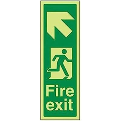 VSafety Glow In The Dark Fire Exit Arrow Up Left Sign 150mm x 450mm Self Adhesive Vinyl