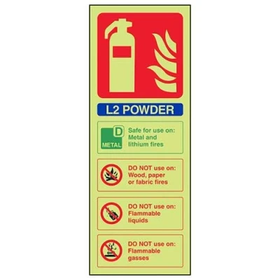 VSafety Glow In The Dark L2 Powder Id Fire Extinguisher Sign 100mm x 280mm Self Adhesive Vinyl