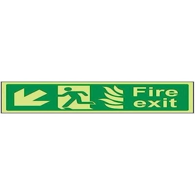 VSafety Glow In The Dark NHS Fire Exit Arrow Down Left Sign 600mm x 200mm Self Adhesive Vinyl
