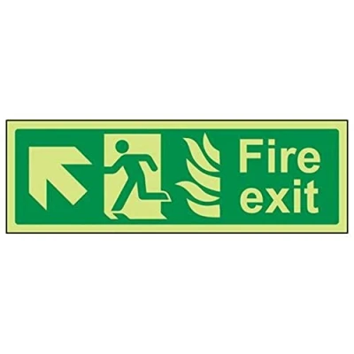VSafety Glow In The Dark NHS Fire Exit Arrow Up Left Sign 300mm x 100mm Self Adhesive Vinyl