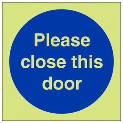 Helps to fulfil obligations to show vital escape route information about fire doors for all employees and visitors as per Health and Safety (Safety Signs & Signals) Regulations 1996 Conforms to EN ISO 7010:2012 Square Orientation. Sign reads "Please Close This Door" Highly durable Glow In The Dark Self Adhesive Vinyl and screen printed message will stand the test of time Sign measures 100 x 100mm. Self Adhesive material will adhere securely to most surfaces
