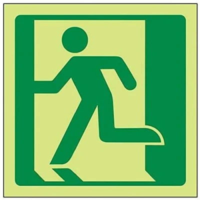 Helps to fulfil obligations to identify escape routes in a fire emergency for all members of staff and visitors as per Health and Safety (Safety Signs & Signals) Regulations 1996 Conforms to EN ISO 7010:2012 by featuring a green background with a white pictogram or text positioned centrally Square Orientation. Sign features ISO compliant Running Man Left Logo Highly durable Glow In The Dark Self Adhesive Vinyl and screen printed message will stand the test of time Sign measures 150 x 150mm. Self Adhesive material will adhere securely to most surfaces
