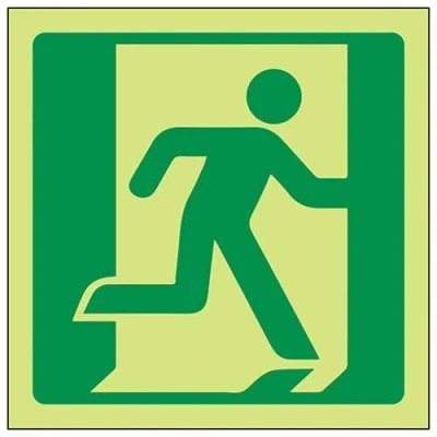 Helps to fulfil obligations to identify escape routes in a fire emergency for all members of staff and visitors as per Health and Safety (Safety Signs & Signals) Regulations 1996 Conforms to EN ISO 7010:2012 by featuring a green background with a white pictogram or text positioned centrally Square Orientation. Sign features ISO compliant Running Man Right Logo Highly durable Glow In The Dark Self Adhesive Vinyl and screen printed message will stand the test of time Sign measures 200 x 200mm. Self Adhesive material will adhere securely to most surfaces